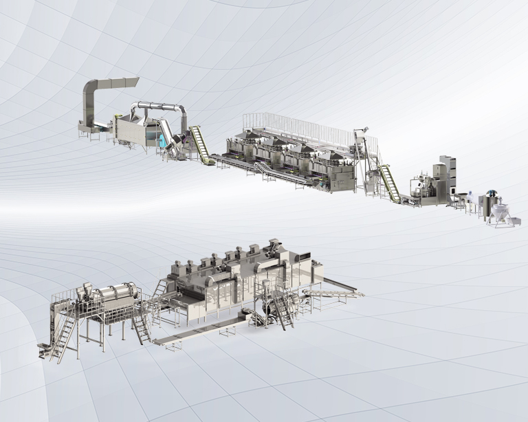 該生產線廣泛用于堅果、籽類、裹粉顆粒食品、薯片、薯條、膨化食品等加工生產。